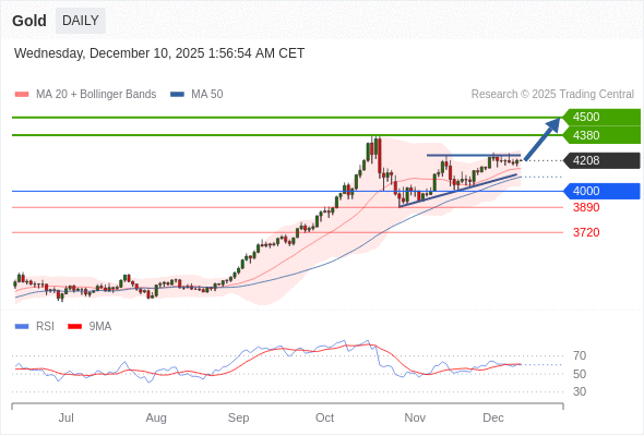 在 4000 之上,看涨,目标价位为 4380 ,然后为 4500 。