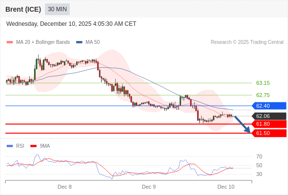 在 62.40 之下,看跌,目标价位为 61.80 ,然后为 61.50 。