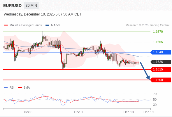 在 1.1640 之下,看跌,目标价位为 1.1615 ,然后为 1.1600 。