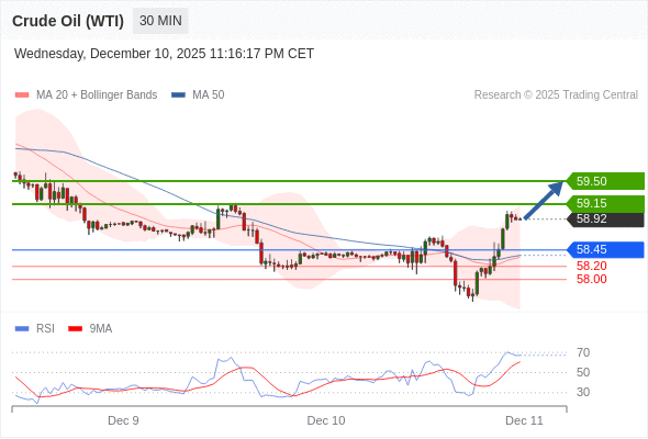 在 58.45 之上,看涨,目标价位为 59.15 ,然后为 59.50 。
