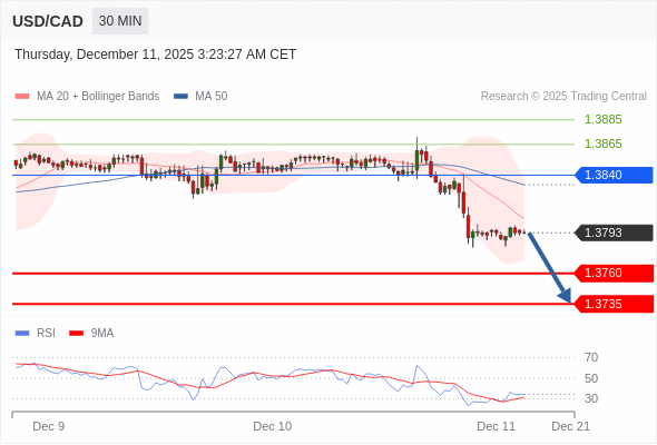 在 1.3840 之下,看跌,目标价位为 1.3760 ,然后为 1.3735 。