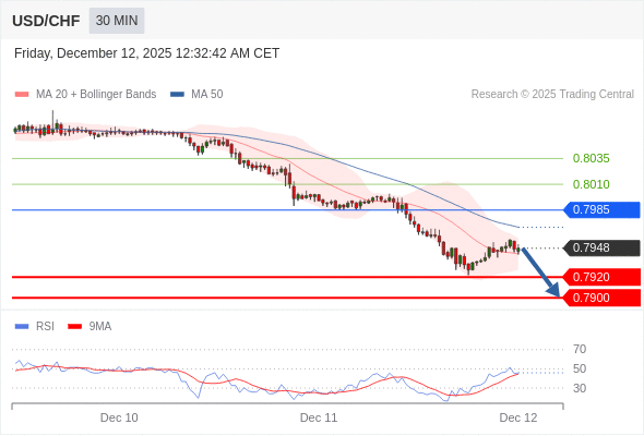 交易策略: 在 0.7985 之下,看跌,目标价位为 0.7920 ,然后为 0.7900 。
