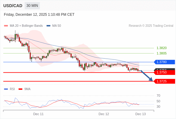在 1.3780 之下,看跌,目标价位为 1.3750 ,然后为 1.3725 。