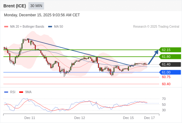 在 61.00 之上,看涨,目标价位为 61.80 ,然后为 62.15 。