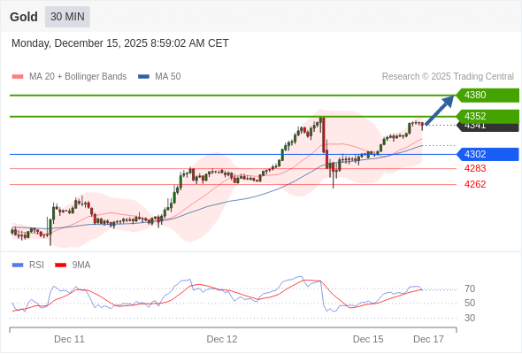 在 4302 之上,看涨,目标价位为 4352 ,然后为 4380 。