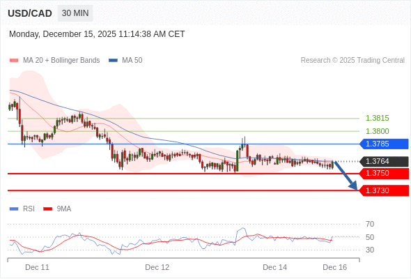 在 1.3785 之下,看跌,目标价位为 1.3750 ,然后为 1.3730 。