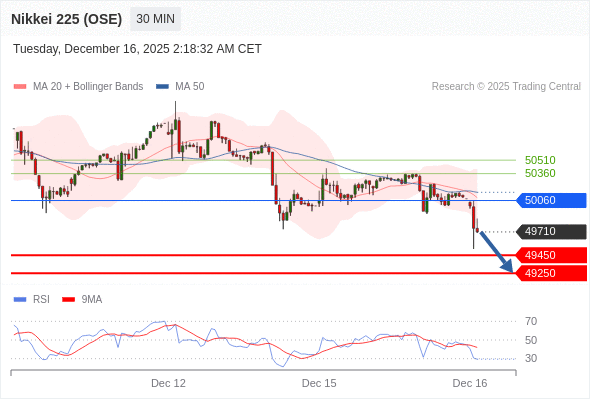 在 50060 之下,看跌,目标价位为 49450 ,然后为 49250 。