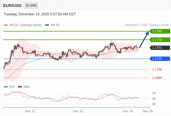 在 1.1725 之上,看涨,目标价位为 1.1770 ,然后为 1.1790 。