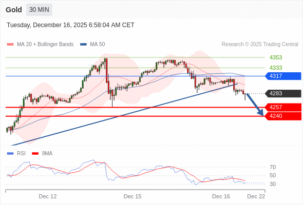 在 4317 之下,看跌,目标价位为 4257 ,然后为 4240 。
