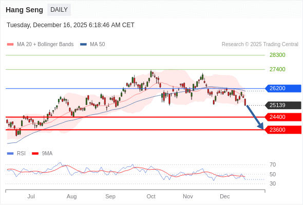 恒生指数 短线: 下跌趋势。