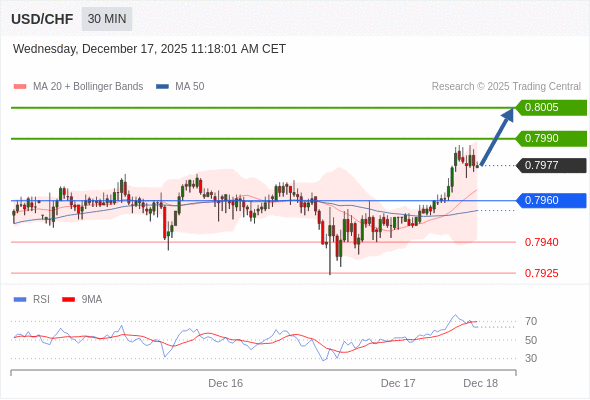 在 0.7960 之上,看涨,目标价位为 0.7990 ,然后为 0.8005 。