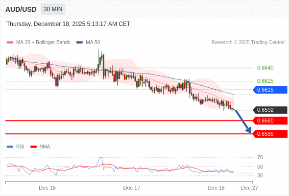 交易策略: 在 0.6615 之下,看跌,目标价位为 0.6580 ,然后为 0.6565 。