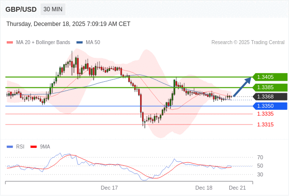 在 1.3350 之上,看涨,目标价位为 1.3385 ,然后为 1.3405 。