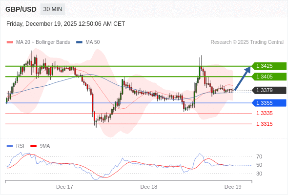 在 1.3355 之上,看涨,目标价位为 1.3405 ,然后为 1.3425 。