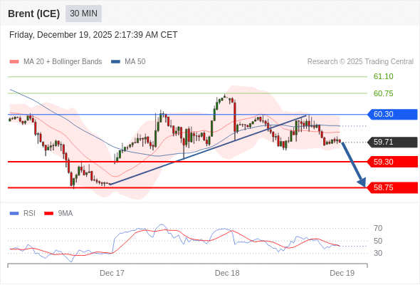 在 60.30 之下,看跌,目标价位为 59.30 ,然后为 58.75 。