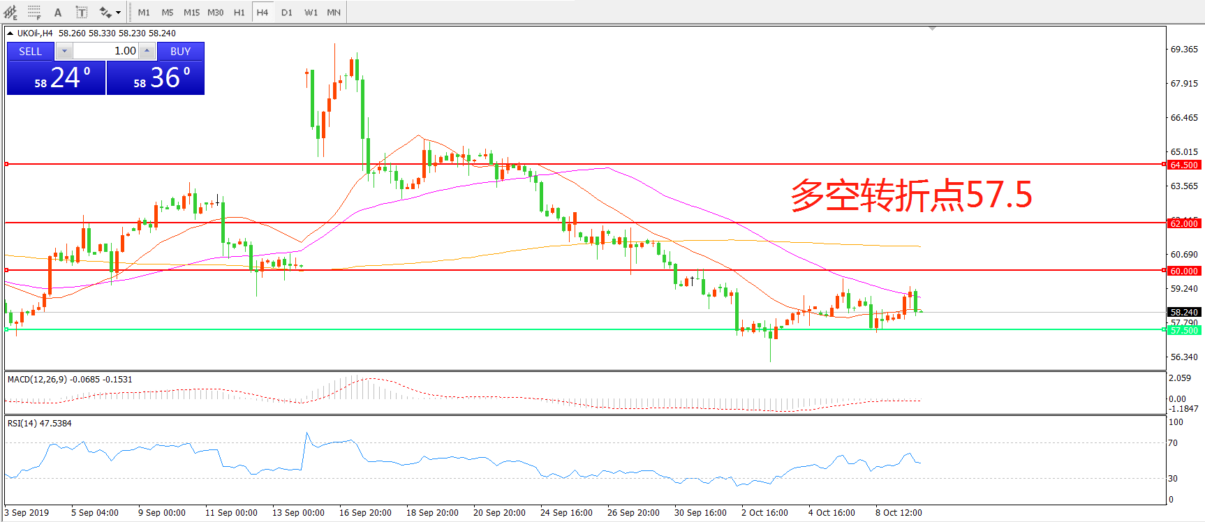 交易策略:在57.50之下看跌,目标55.50    53.00