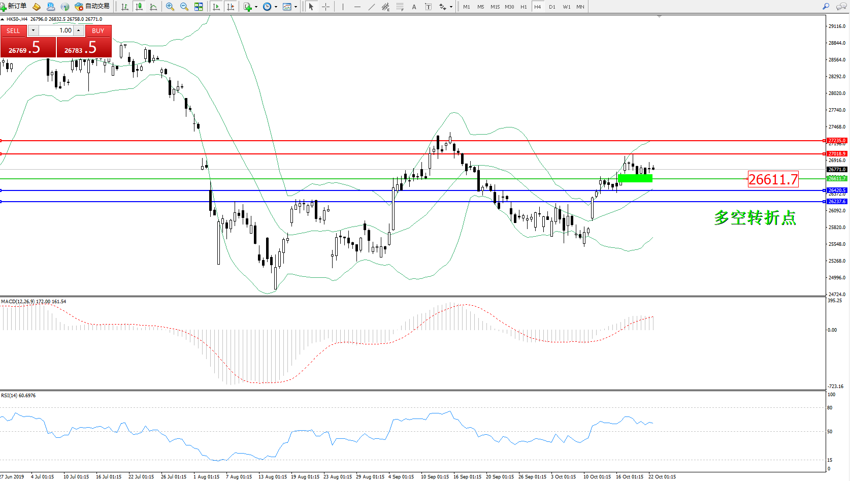 恒指HK50 ——4小时K线图显示: