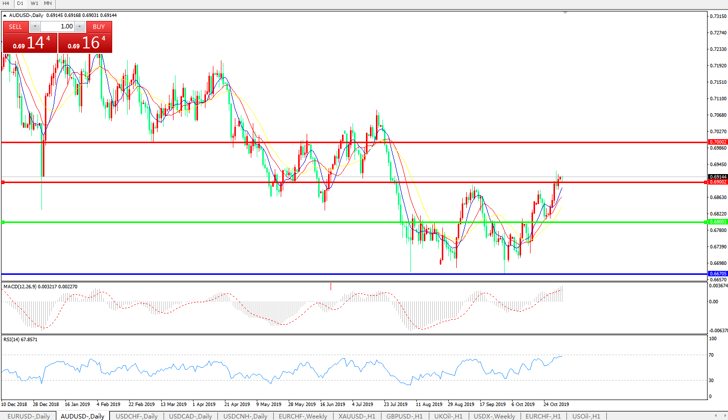 荷兰国际银行:澳洲联储下周的前瞻指引对市场影响更大;目前市场预计澳洲联储下周二降息的可能性仅为6%,因此(相比利率)该央行下周的前瞻指引对市场影响更大。我们的基本预期是澳洲联储在2019年底之前都不会降息,澳洲联储主席洛威可能会暗示暂停降息步伐,并可能展现出谨慎,表示对进一步降息持开放态度。澳洲联储偏鹰派的表述或将令澳元兑美元面临上行风险,波动范围料在0.6850-0.7000之间,不过200日均线0.6955处将是强劲阻力位