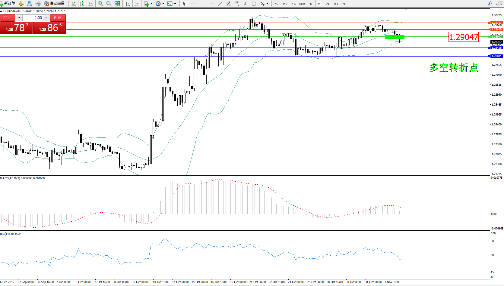 交易策略:1.29047下方看跌,目标1.28458、1.28011
