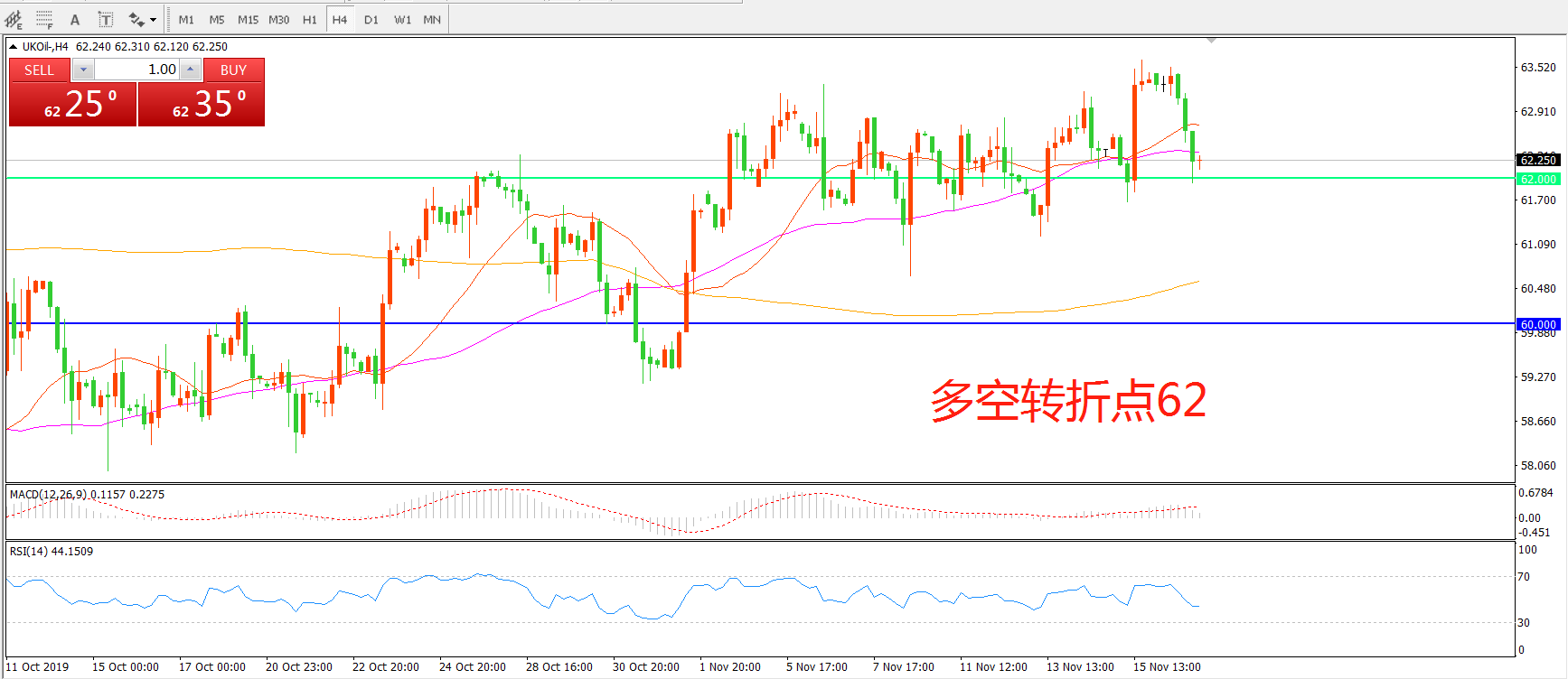 多空转折点:62.00