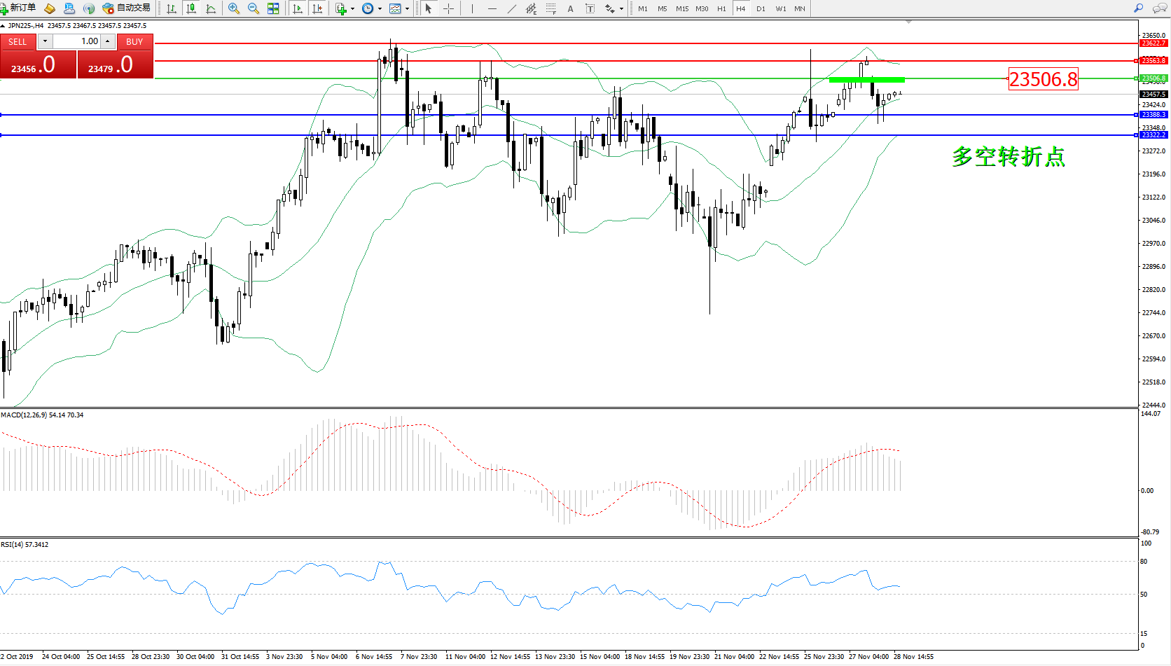 日经指数JPN225——4小时K线图: