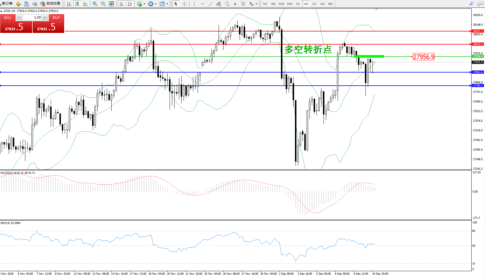 道琼斯指数12月10日(周二)收盘下跌27.90点,跌幅0.10%,报27881.72点。因投资者等待美联储和欧洲央行会议的进展,以及12月15日美国对下一轮加征关税的最后期限,燃点全球市场的谨慎情绪。美国银行报告指出,美联储无意在本周会议上调整政策,自10月会议以来,美联储的信号非常明确:即货币政策适当,当展望需要实质性重新评估时才会调整利率。市场仍在关注国际贸易关系的进展与美联储货币政策会议结果。除非出现板上钉钉的消息,表明15日新关税计划不会实施,否则市场不会完全放心。