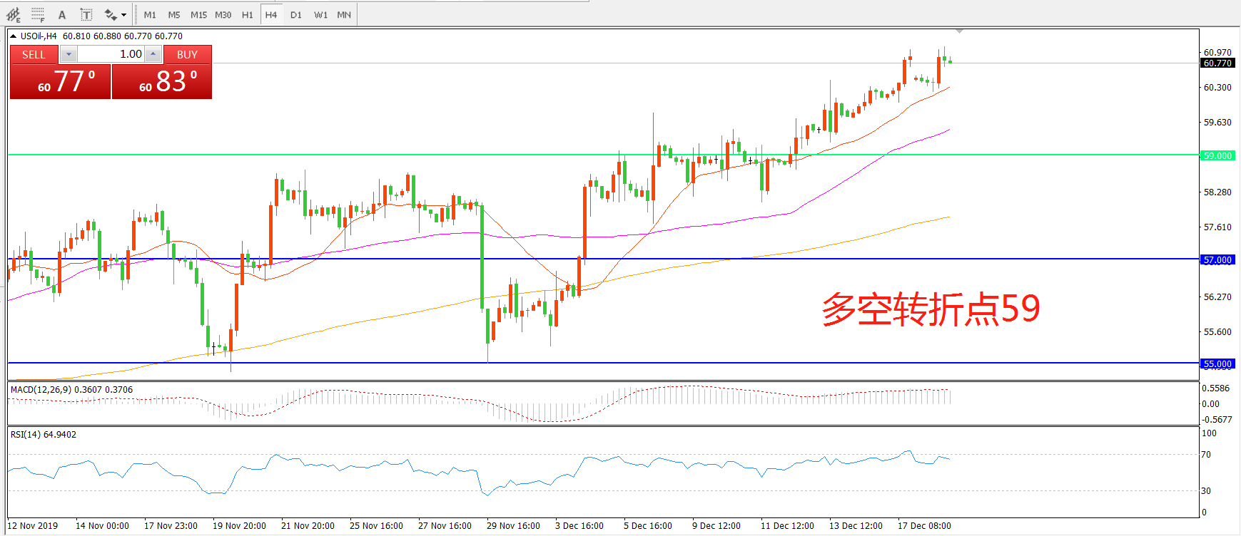 交易策略:在59.00 之上看涨,目标62.00 65.00