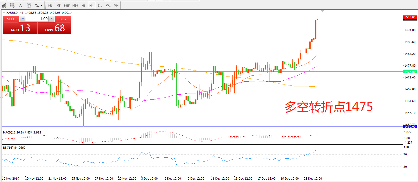 交易策略:在1475.00之上看涨,目标1500.00 1530.00