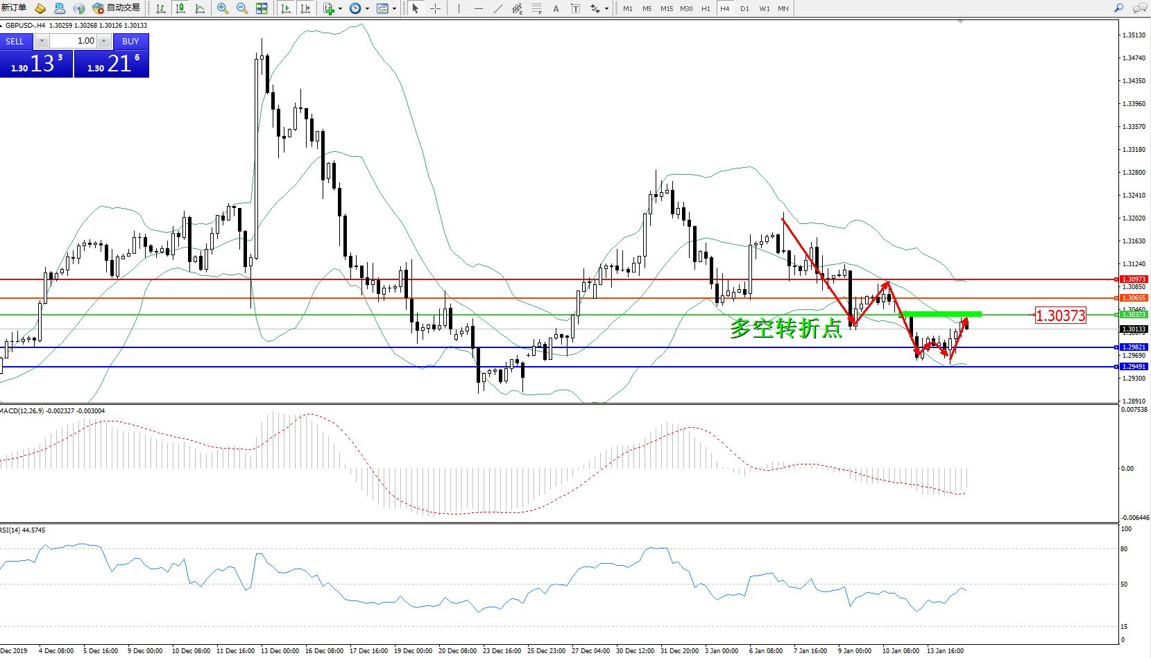 备选策略:1.30373上方看涨,目标1.30655、1.30973