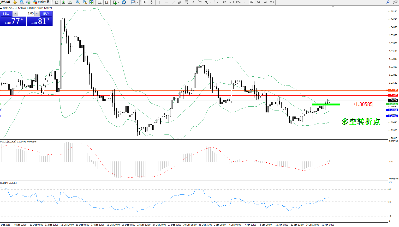 交易策略:1.30585上方看涨,目标1.31008、1.31255