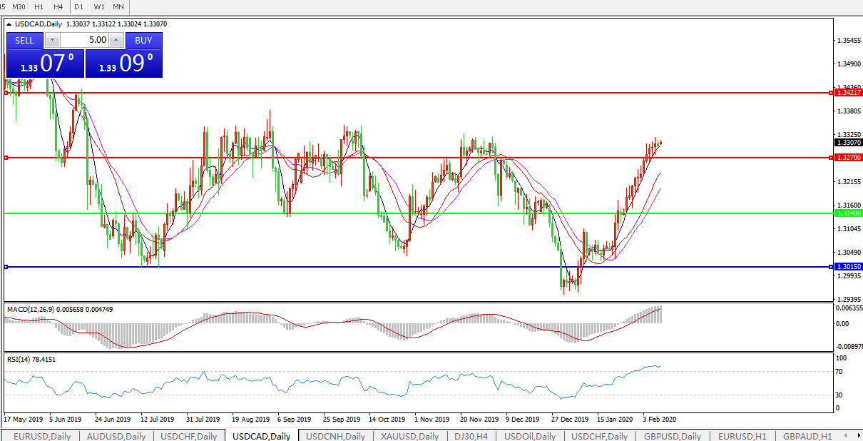 技术面简析:日线图均线呈多头排列,汇价上攻态势稍微停歇,MACD开始走升且量能0轴上方持续放量,RSI超卖区域微走缓,预计汇价短期大概率将延续整理上行态势。