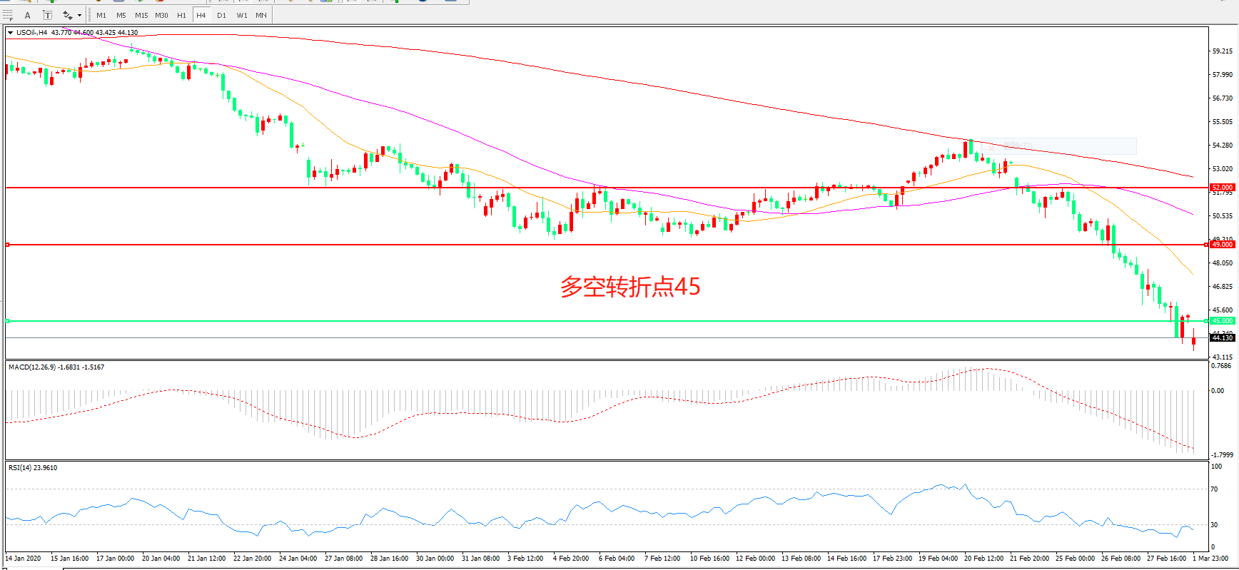 交易策略:在45.00之下看跌,目标40.00         36.00