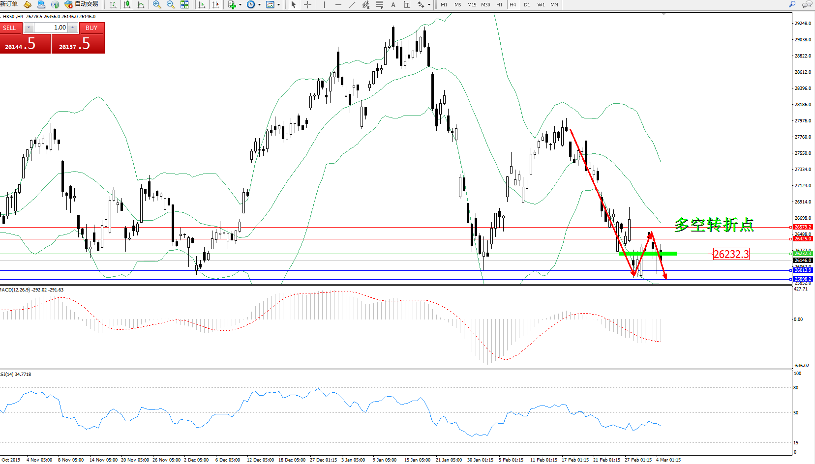 香港恒生指数3月4日(周三)收盘下跌62.75点,跌幅0.24%,报26222.07点;港股市场震荡明显,主要股指收盘涨跌不一。随着隔夜美联储紧急降息50个基点,全球央行的降息大幕无疑已彻底拉开!香港金管局跟随美联储降息,将基准利率下调50个基点,至1.50%。美联储宣布紧急降息以遏制新冠病毒造成的经济损失后,其他主要央行的决策者承受着更大的压力,投资者希望他们能跟随美联储,尽管这些央行已没有多少利率下调空间。目前,业内人士普遍预期加拿大央行会在周三降息,英国央行和欧洲央行本月可能也会下调利率。Evercore ISI的副董事长,前美联储官员Krishna Guha表示,美联储的果断行动将对其他国家构成巨大压力。
