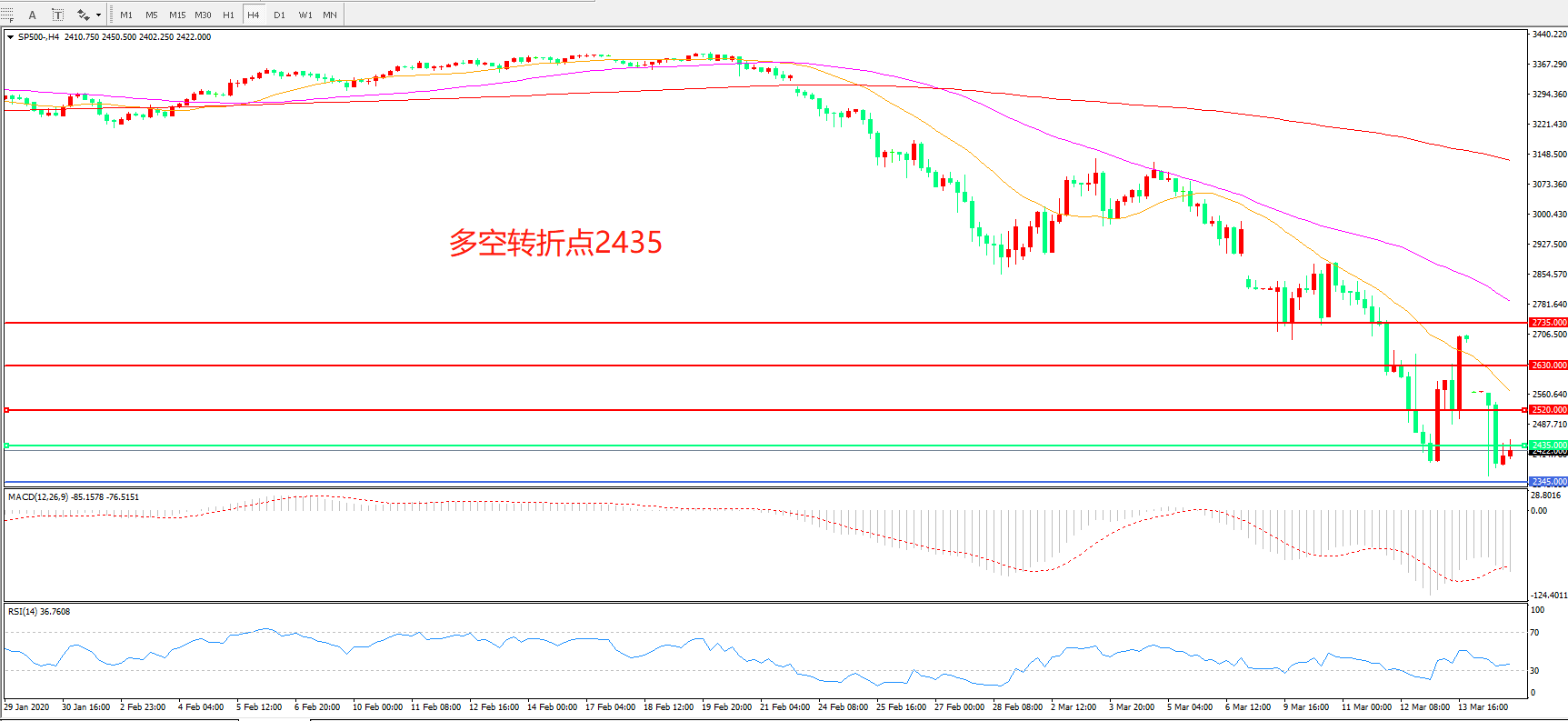 4小时图看,标普500低开低走,整体表现极度低迷,均线系统呈空头排列,MACD绿柱增加,RSI指标走平,日内延续下行概率较大。
