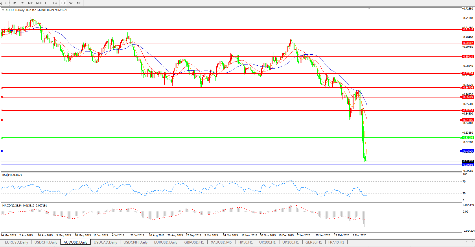 美元指数跌0.47%至97.96;美联储周日将利率下调至0%-0.25%的目标区间,并表示未来几周将至少将资产负债表扩大7000亿美元。预计此举将有助于解决一些市场混乱,包括美国国债市场的流动性,过去一周美元上涨,因企业动用信贷额度和银行贷款机构寻求美元来为贷款融资,导致美元来源变得紧张。为解决这一问题,美联储和其他主要央行也下调了货币互换额度的定价,以便更容易地向全球金融机构提供美元。全球多家央行周一采取行动,缓解了紧张状况。日本央行在一次紧急会议上表示,将购买更多公司债券和商业债券,且建立一个新的公司贷款计划。新西兰联储紧急降息,澳洲联储向金融系统注入额外资金。