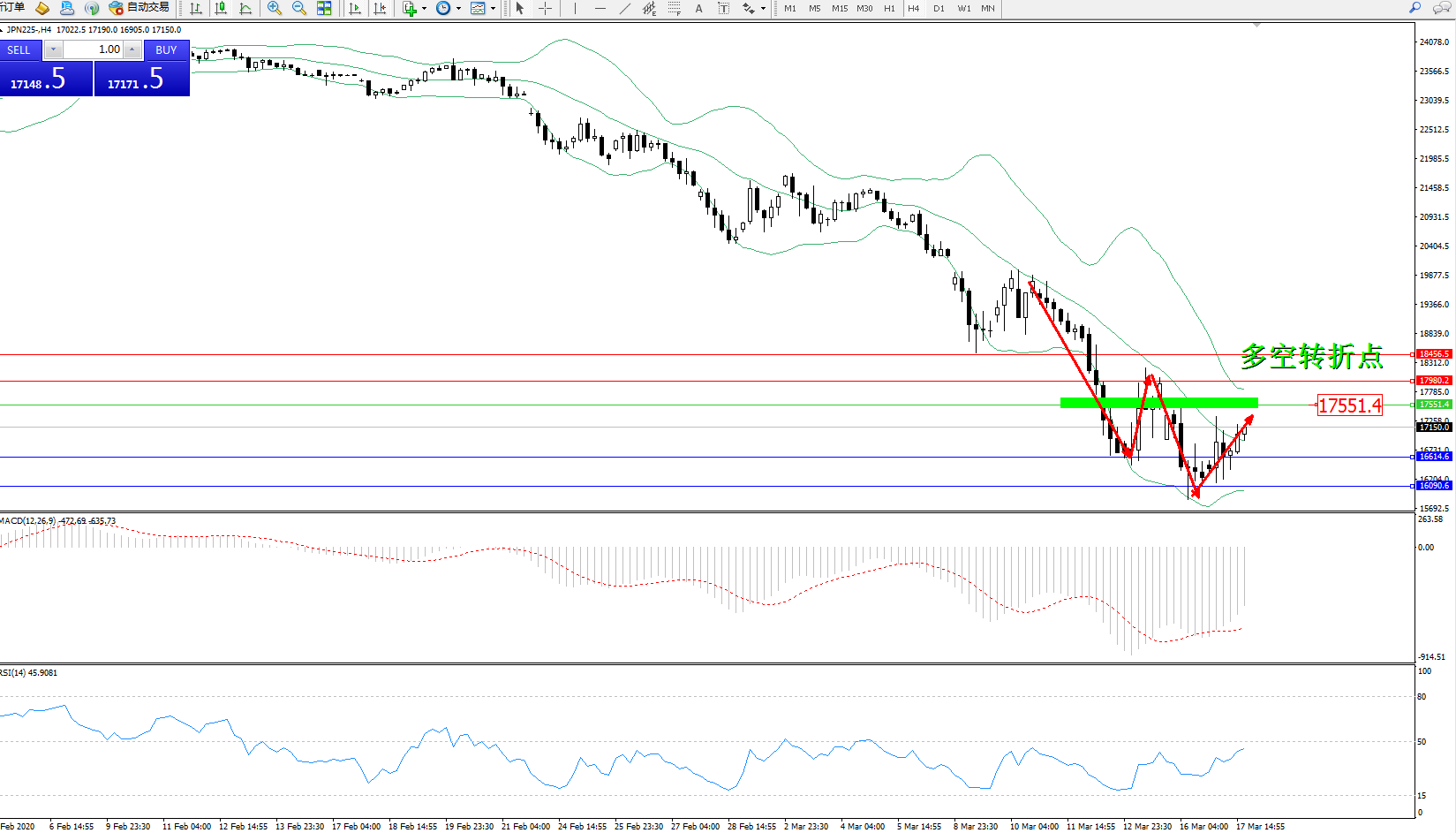 日经225指数317日(周二)收盘下跌63.54点,跌幅0.37%,报16938.50点。在各国政府和央行加大努力以减轻新冠病毒造成的经济后果后,避险需求减退。但全球股市的暴跌仍可能延续,卫生风险在全球范围的发展令投资者感到不安,鉴于日本央行也在采取更多资产购买等宽松行动,但力度仍有限,当美联储北京时间周一凌晨将利率降至近零水准后,美元曾震荡走弱,因为降息便打掉了持有美元的收益,美元的投资魅力也大为减少。然而,几乎没什么人愿意押注美元将长期下跌。欧美国家新冠疫情大流行的恐惧正在重创市场,美元的避险及融资需求同步升高。