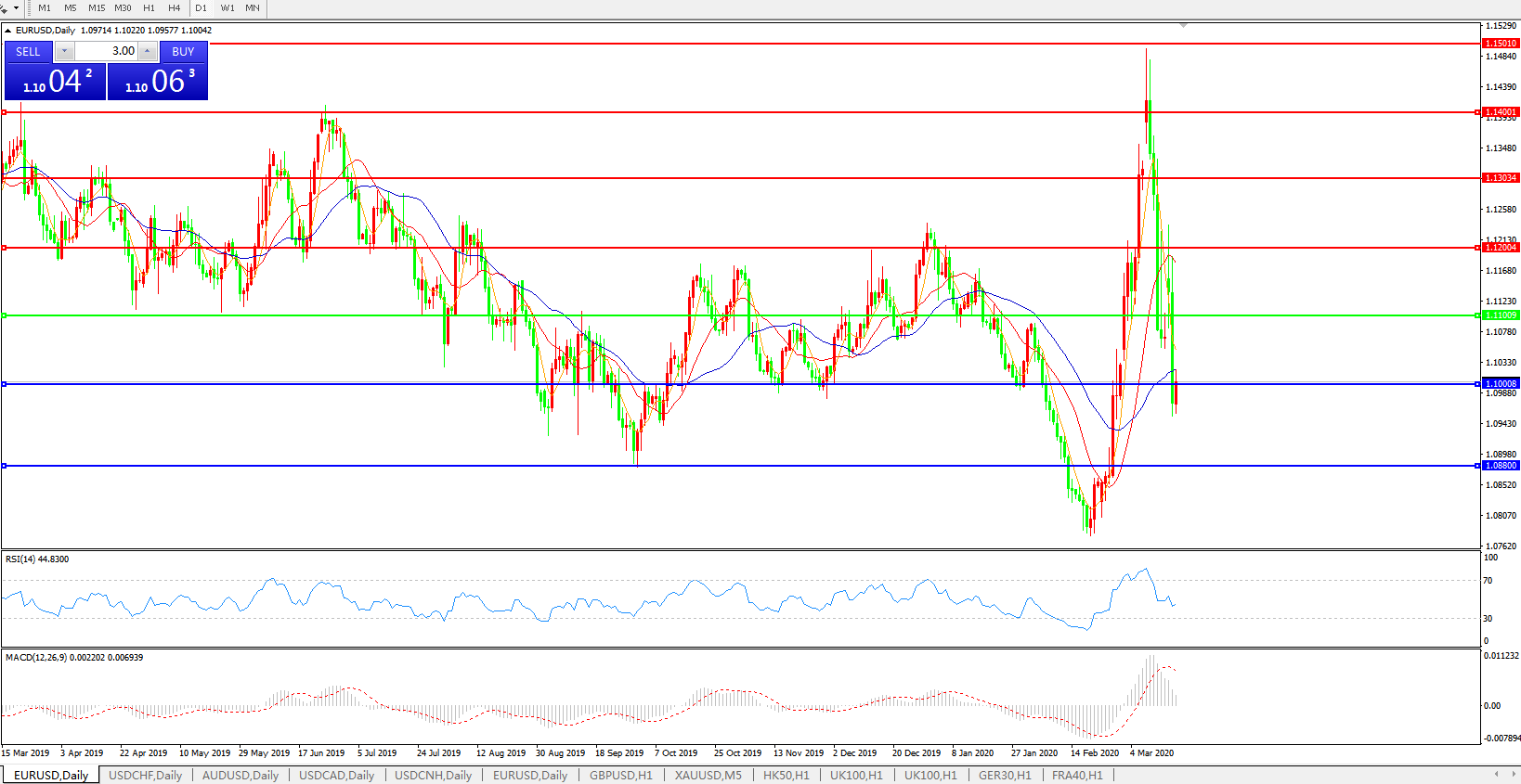 交易策略:1.1100下方看跌,目标1.1000、1.0880