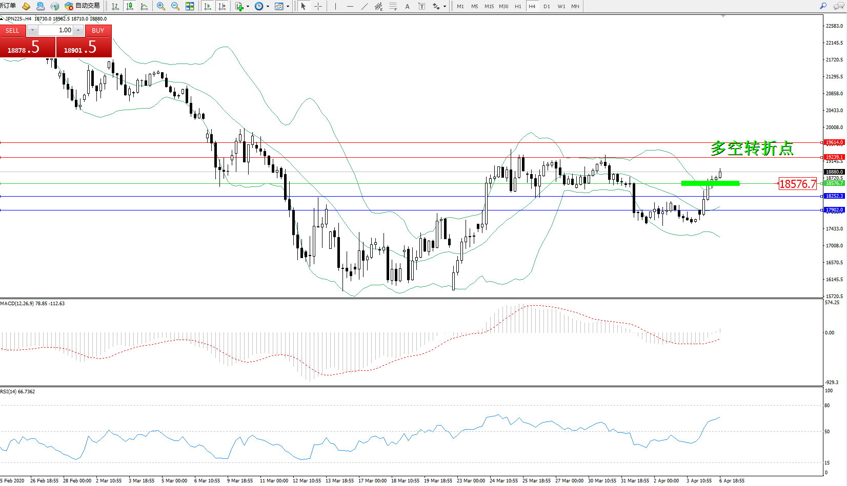 日经指数JPN225——4小时K线图显示: