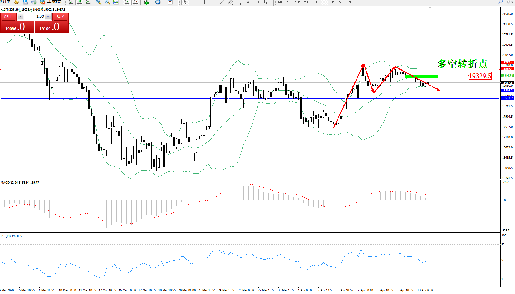 日经225指数4月13日(周一)收盘下跌346.77点,跌幅1.79%,报18999.00点。日内投资者对疫情的担忧情绪再起,亚洲股市纷纷走低,全球新冠病毒感染病例突破180万,如果没有有效的治疗方法或疫苗,美国经济可能面临18个月周而复始的停摆,美国股指期货下跌,日本股市也下跌。某些市场仍因复活节假期而关闭;投资者“预期收益和经济数据不佳,同时也担心第二季度的指引疲弱,因各经济体继续实施某种形式的限制出行,对全球经济的警惕升温给风险资产造成压力,各国政府相继实施封锁措施以遏制疫情蔓延,全球经济自金融危机以来首次陷入萎缩。