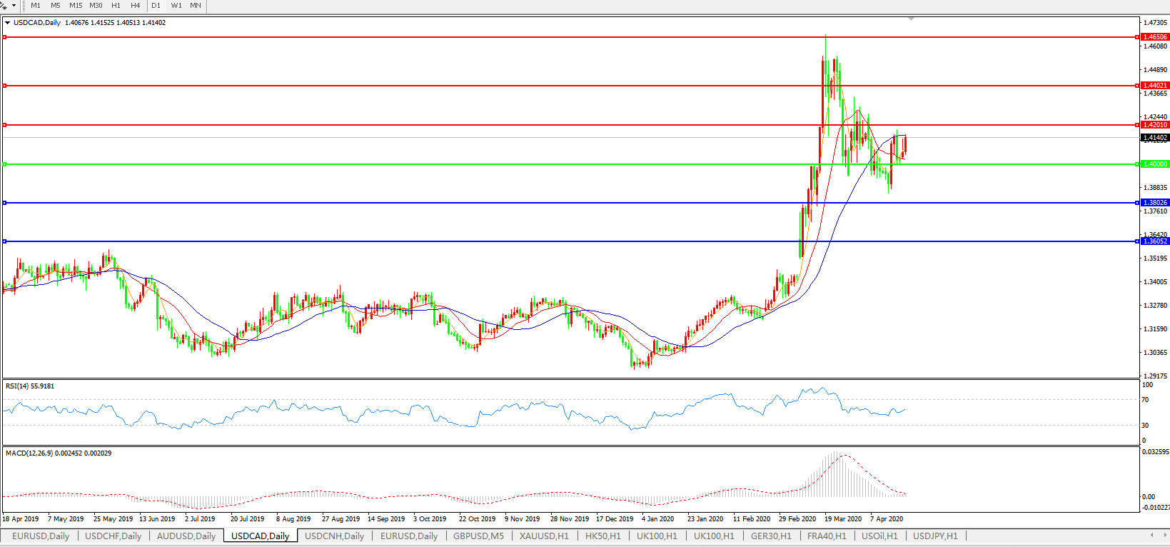 交易策略: 在1.4000之上,看涨,目标价位为1.4200、1.4400