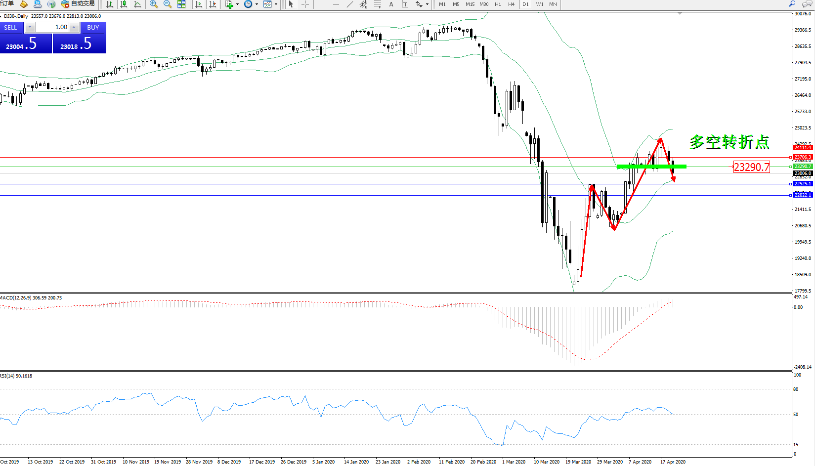 道琼斯指数4月21日(周二)收盘下跌631.60点,跌幅2.67%,报23018.88点。美国股市创下近三周来最大跌幅,科技股领跌,因原油期货价格崩溃引发了新一轮避险。股市投资者无视白宫和国会就新一轮临时刺激法案达成协议。油价崩溃可能预示着新冠疫情对全球经济的打击将远远超出投资者的预期。股市看来在近期快速反弹后涨势停滞,这在很大程度上是因为原油价格的历史性崩溃令已经脆弱的市场情绪雪上加霜。投资者急于套现,以弥补其他资产类别的损失,这些资产价格下跌主要受累于新冠病毒重创经济之际,油市崩跌。