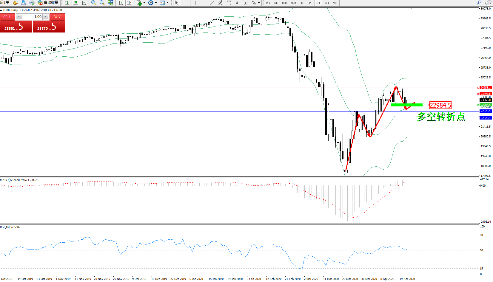 道琼斯指数422日(周三)收盘上涨456.90点,涨幅1.99%,报23475.82点。美国股市止步两连跌,投资者消化了最新一轮公司季报,并且对于最终解封防疫限制措施的乐观预期升温。一些公司季报点燃了复苏可能比预期来得更早的希望。信息技术板块领涨,其次是能源板块;日常消费品板块领跌,其次是金融板块。推动股市反弹的是隧道尽头的光明,重新开放经济活动的前景日趋明朗。