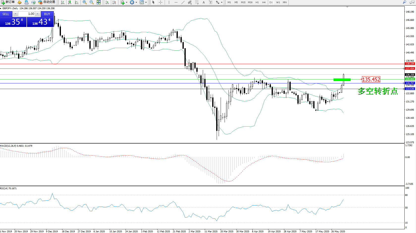 英镑兑日圆上行至136.320附近徘徊,英欧未来关系谈判第四轮将在当地时间1430分(北京时间2030分)开始,双方将在2日到5日的四天时间中,就渔业、公平竞争环境和航空与能源等方面展开谈判,预计谈判将在当地时间5日中午1230分(北京时间1830分左右)结束。第四轮谈判作为6月底前的最后一轮谈判,如果双方无法达成一致意见,将为接下来半年的谈判带来空前的压力以及增加英国无具体后续安排脱离欧洲的风险。