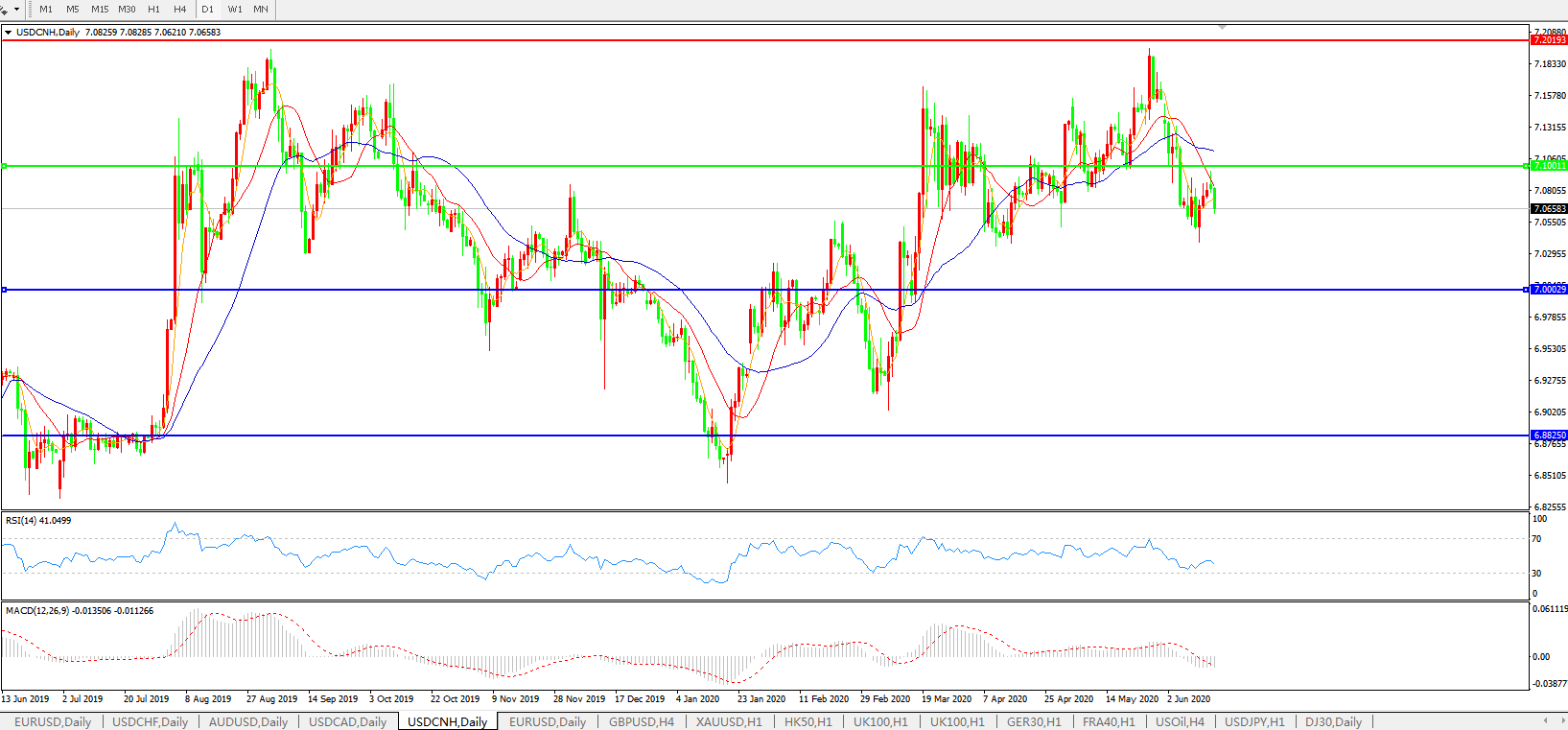 交易策略: 在7.1000之下,看跌,目标价位为7.0000,然后为6.8820。
