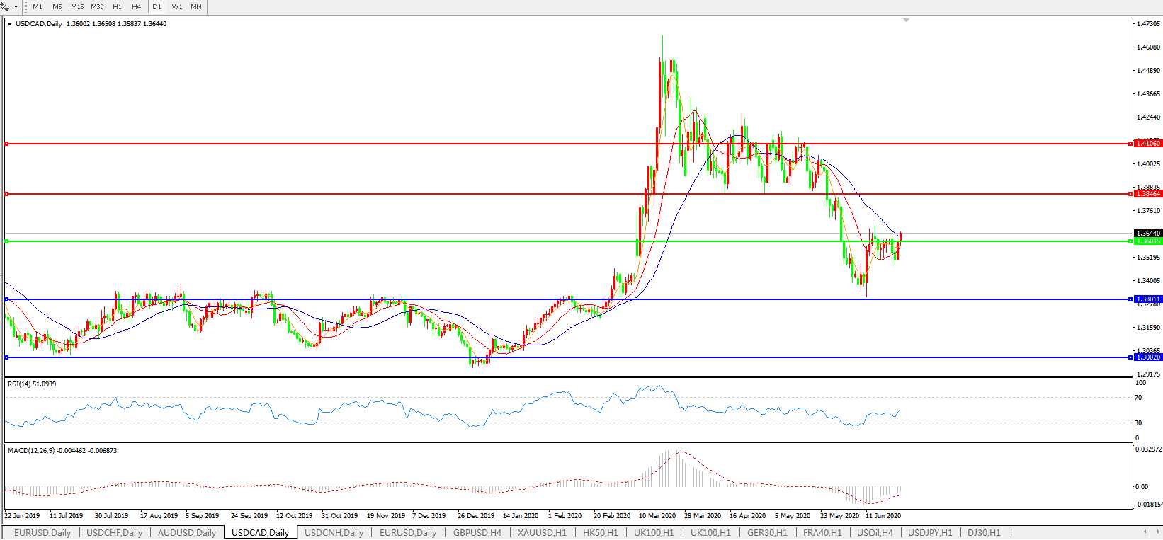 备选策略:在1.3600之下,看跌,目标价位为1.3300、1.3000
