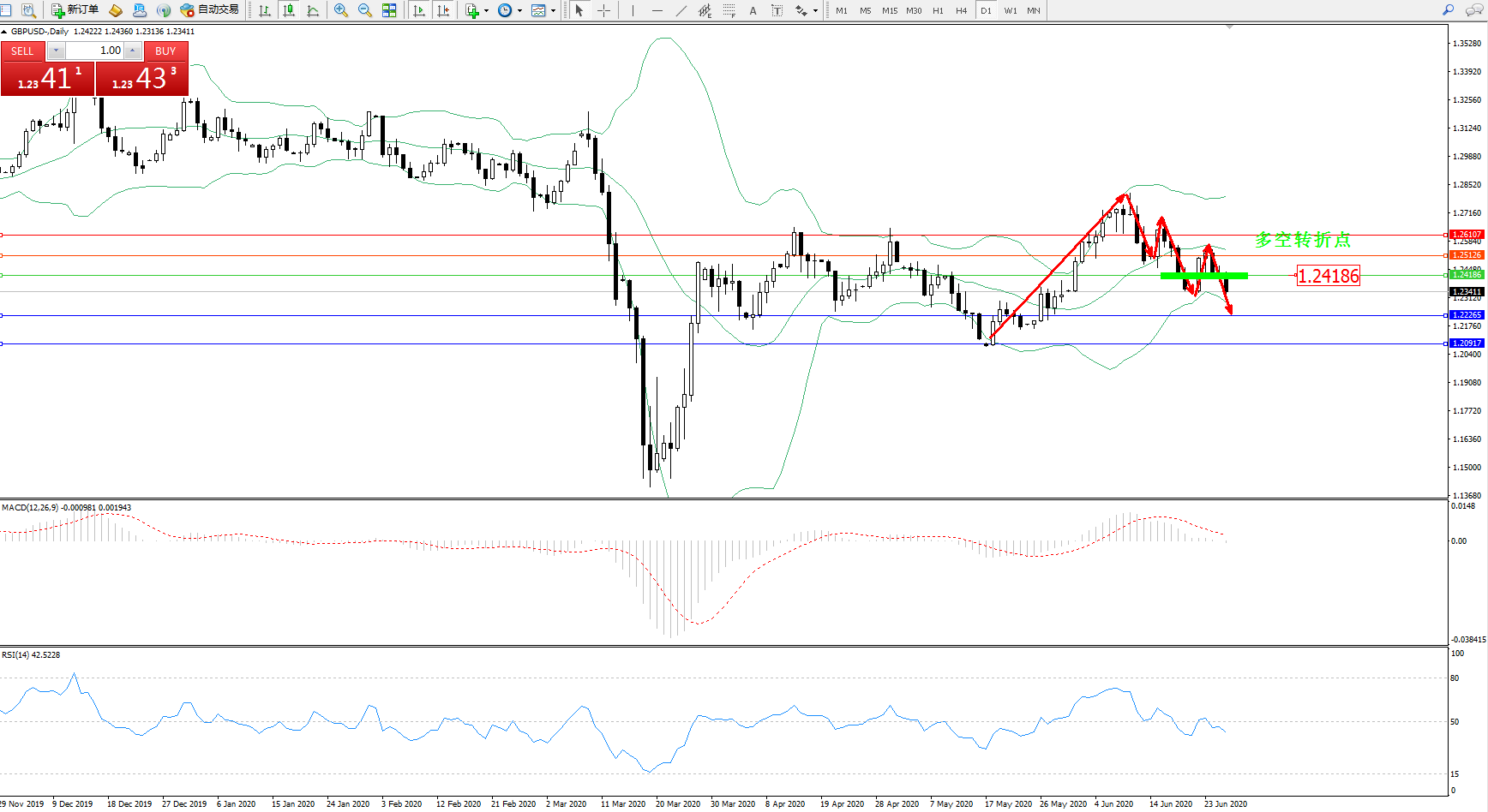 交易策略:1.24186下方看跌,目标1.22265、1.20917