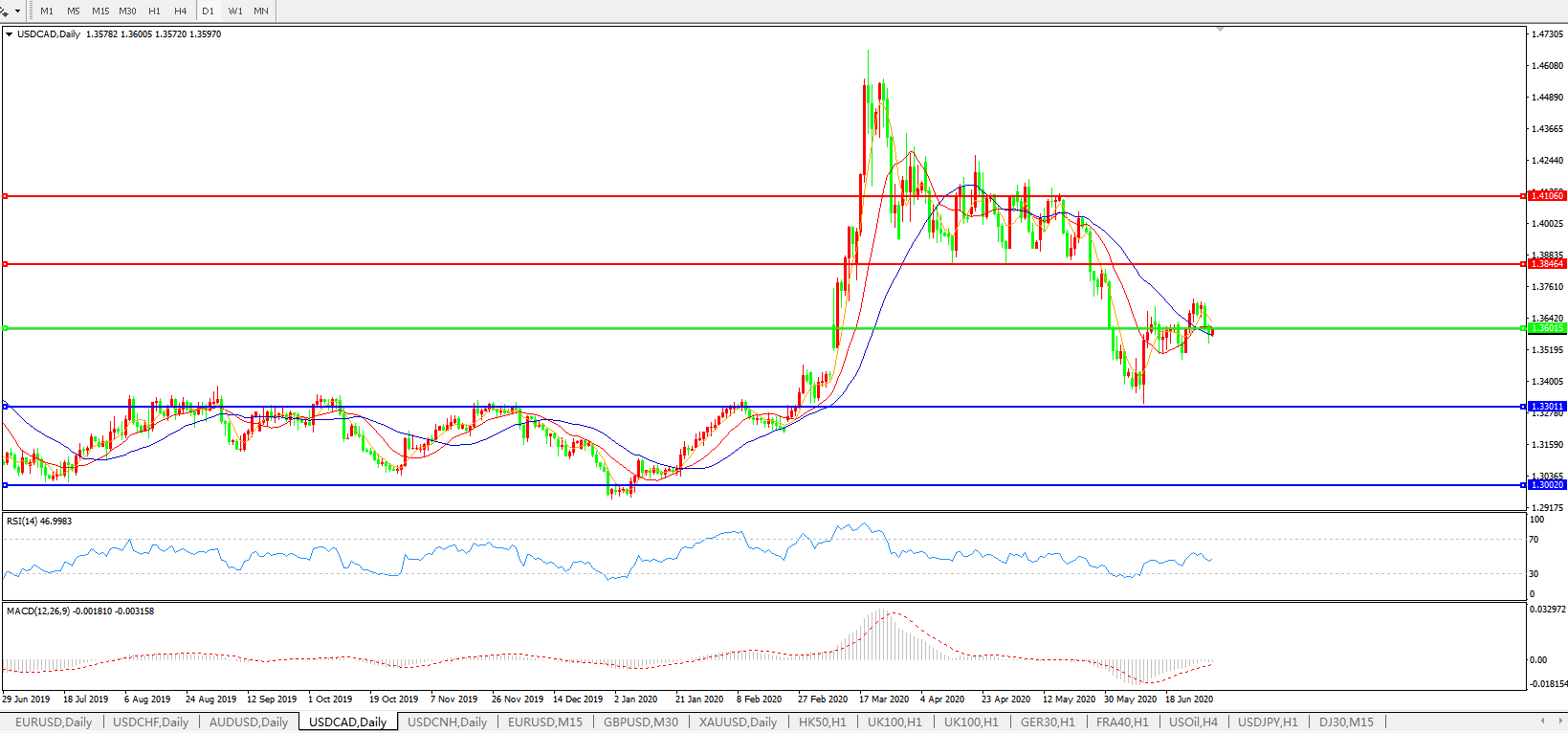 交易策略:在1.3600之下,看跌,目标价位为1.3300、1.3000