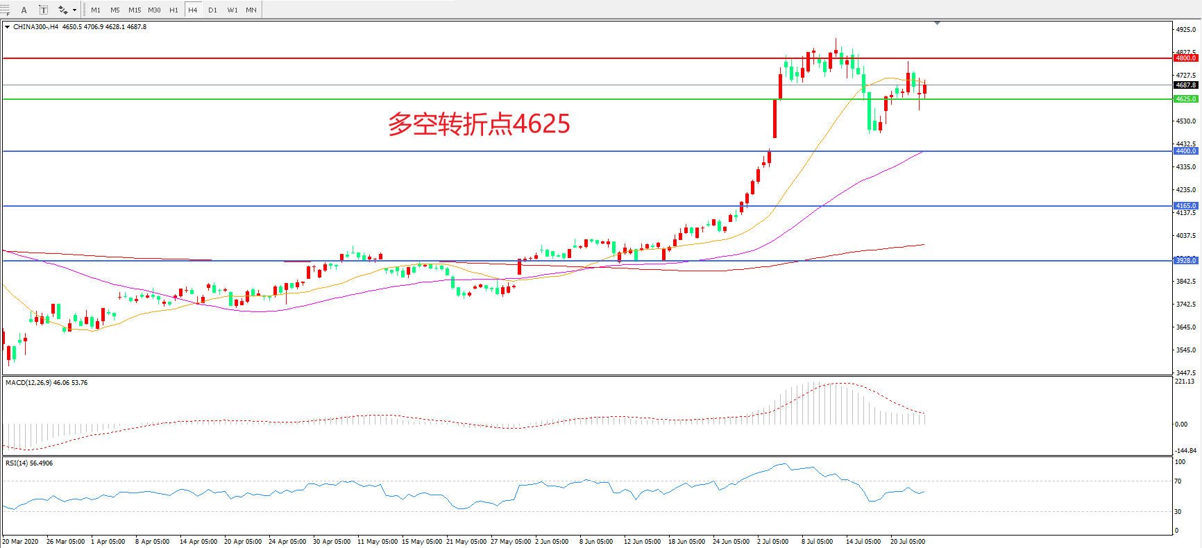 多空转折点:4625.00