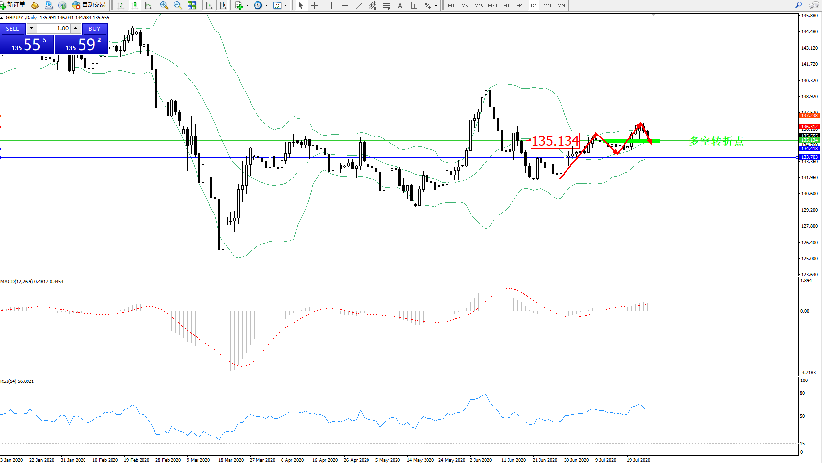 英镑兑日圆弱势回撤至135.555附近徘徊,在达成自由贸易协议可能性的问题上,英国和欧盟发出了相反的信号。欧盟方面认为目前“不太可能”达成,但英国方面仍寄望能在9月就达成协议。据英国消息人士称,如果欧盟在秋季让步,那么英国和欧盟仍有可能达成“基本”协议。目前,市场预计英国和欧盟的最后关键谈判日期是在10月15日至16日举行的欧盟领导人峰会,也就是今年美国大选(2020年11月3日)之前最后一次重大欧洲峰会。英国和欧盟双方都表示,对方需要采取行动。如果要达成协议,很可能会在最后一刻达成。这意味着,在10月份达成协议之前,各方必须在9月份达成妥协——这样双方就有足够的时间在年底前批准协议。