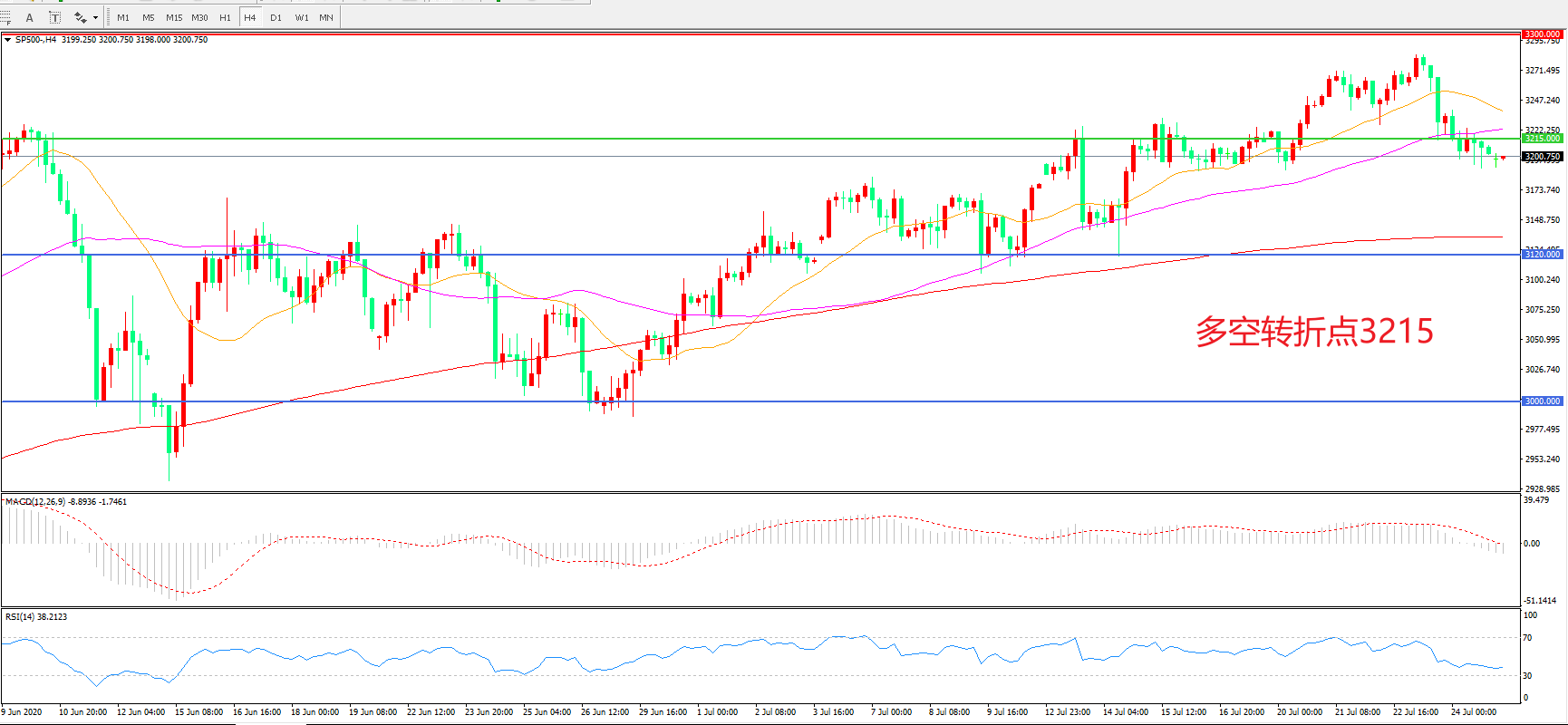 上周五周四(7月24日),受中美博弈升级影响,美股市场三大指数全线走跌,标普500指数跌0.62%,报3203.50点。此前强势的科技股似成为强弩之末,是当前美股市场获利回吐的主要对象,苹果跌0.25%,谷歌跌0.56%,Facebook跌0.81%,微软跌0.61%。